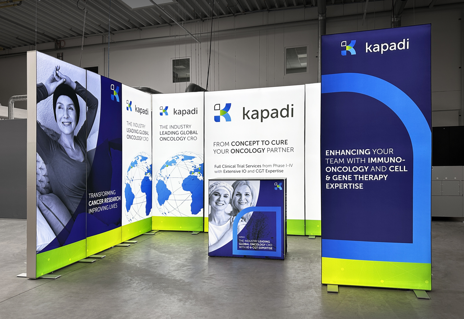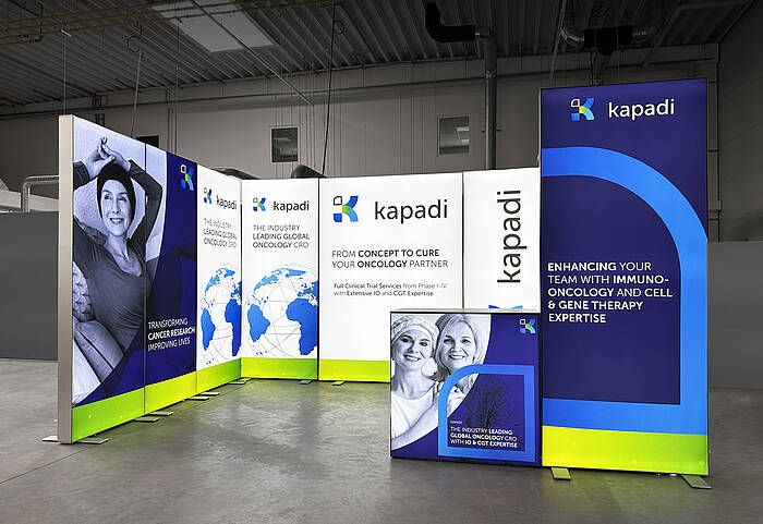 With an ALU STAR LED exhibition stand, booths can be adapted to the specific requirements of each stand. Our client, Kapadi Germany GmbH, therefore chose six 100 cm wide ALU STAR modules, one 175 cm wide module, and a 100 cm wide door element for their booth. All these LED modules can be flexibly connected, allowing for numerous configuration options. The door element can be used to create a flexible storage area as needed. All components are individually stored in practical transport cases with wheels, making transport easy and convenient.