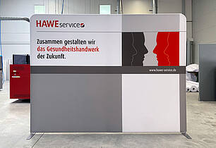 Modular walls: Our ISOframe exhibition systems are a good example of modular back walls. If a press wall is produced from this system, it can be customised in width to suit the respective event location. In addition, the back wall can be flexibly moulded into a wave, circular or curved shape, which enhances the high-quality visual impression of this wall system.