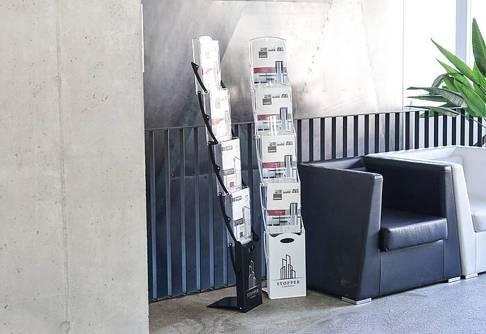 The Real ZIP series Black was developed for customers who need a brochure rack in top quality, but at a reasonable price. Like the classic Real ZIP, the Real Zip Black can be folded to a small size and transported in a practical carrying bag. The completely made of painted metal base plate gives the brochure stand the necessary stability. The brochure holder can also be easily traded thanks to the integrated handle in the system. The painted front surface can be provided with an individual logo print on request.