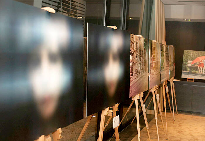 Die großformatigen Fotografien wurden in einer Wanderausstellung an vier wechselnden Locations innerhalb Frankfurts ausgestellt.